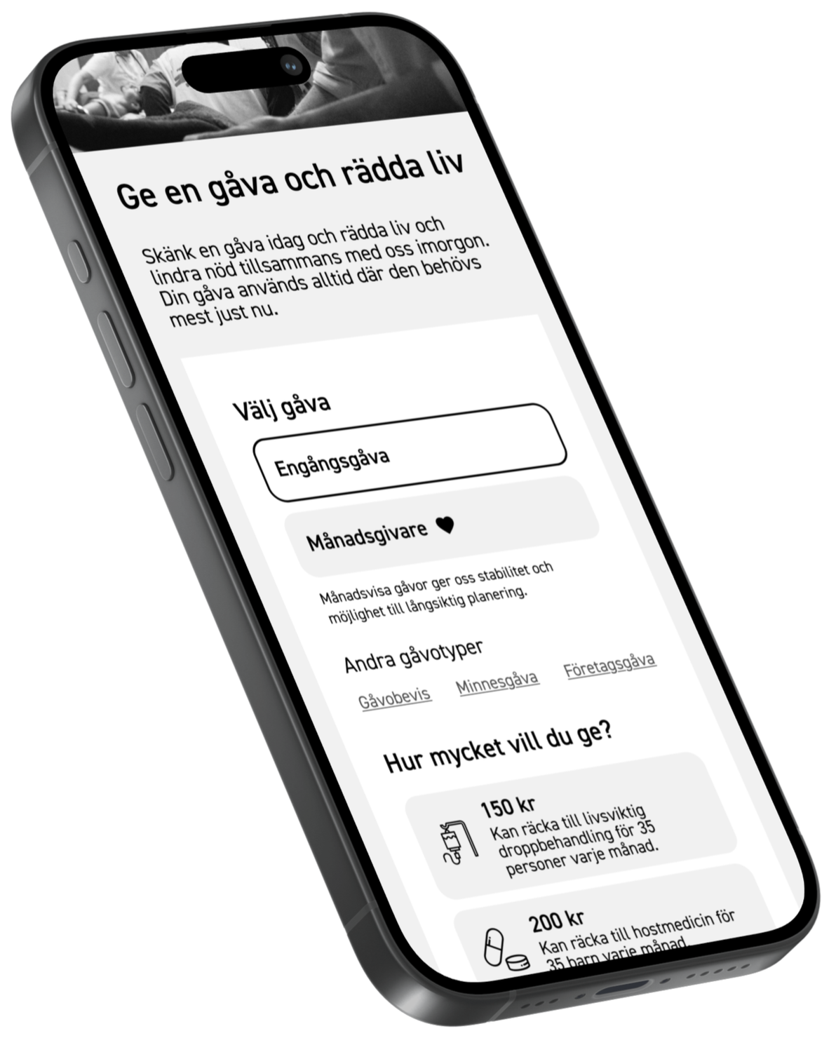 Uppdraget var att leverera en ny, evidensbaserad design för Läkare utan gränsers gåvoformulär, grundad i faktiska användarbeteenden, kvantitativa undersökningar och tillgänglighetsprinciper. Målet var formulär som känns enkla och trygga att fylla i, oavsett om man ger en engångssumma, sätter upp ett månadsgivande eller vill hedra någon med ett gåvobevis.